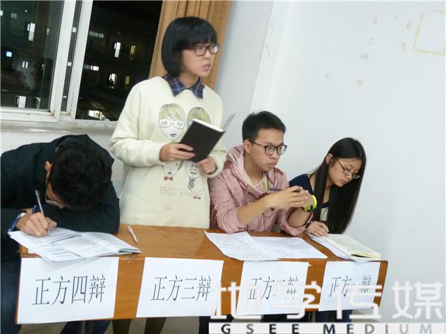 对辩环节中正反方二辩从法律条文及规章制度的实质下手,层层剖析使辩论赛到达一个高潮。正方二辩刘程良更是旁征博引,举出中外等事例步步紧逼。现场气氛迅速升温。
