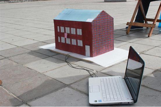 其三,在一个烈日炎炎午后,科创中心的成员在四号教学楼楼顶进行厂房降噪模型设计大赛作品的降噪功能进行测定。将近33个作品,每个作品的测定时间十分钟左右。为了体现公平的原则,工作人员允许参赛选手现场观看测定过程,要等待选手们前来,还要避开风和周围噪声的影响,整个过程持续了五个多小时。太阳炙烤着大地,工作人员躲无可躲,就在太阳下晒着,测着。场面着实令人感动。