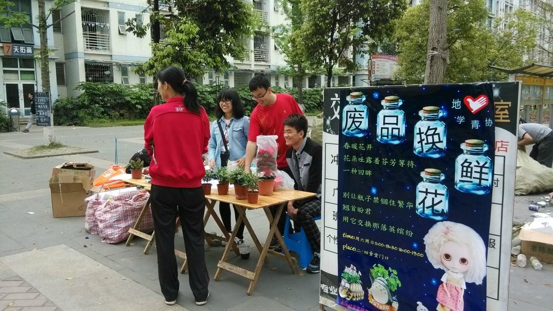 地学青协会长李小龙表示:“地学青协废品换鲜花活动,充分体现了环境专业的专业特色,作为地学志愿者,我们有责任向全校同学宣扬环保精神,尽自己最大的努力,让这个校园更干净、更美好!”