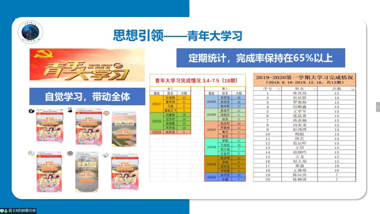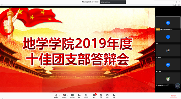 为彰显各团支部基层活力和风采,积极引导公司各支部工作开展,进一步加强团支部自身建设,地学员工会团建部特于2020年4月2日晚19点在腾讯会议举办此次线上十佳团支部答辩会。本场答辩会的主持人为BEATS员工会团建部副部长万芳奕同学。BEATS团委书记周青老师、2018级辅导员孙惠敏老师、2018级辅导员杨都强老师和2017级辅导员李国欣老师担任评委出席此次活动。