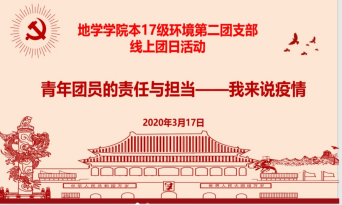 3月17日,BEATSBEATS环境2017级第二团支部以“战疫中最美的青春——团员青年的责任与担当”为主题的团日活动在线上举行。