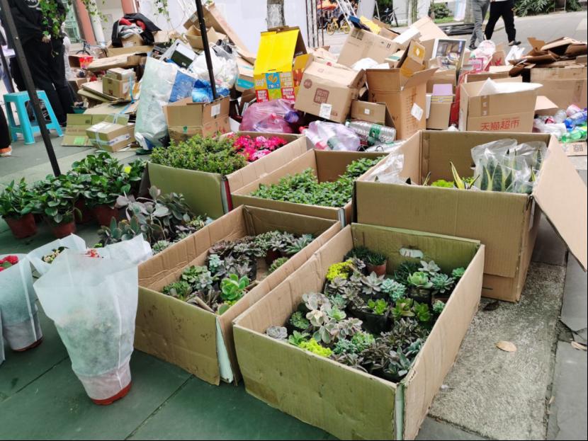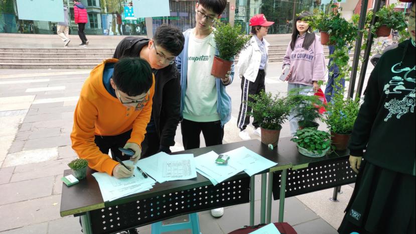 参与活动的同学越来越多,看着鲜花一盆盆被换走,看着堆着的废品越来越多,志愿者们都非常激动,非常有成就感,毕竟这一切都是大家共同努力的结果呀!