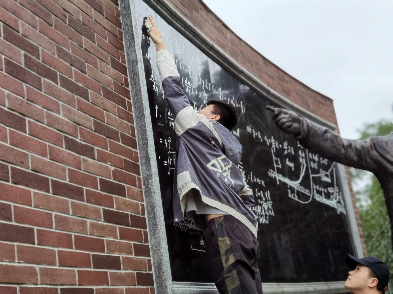 9月30日早,25名志愿者在一食堂门口集合,一起前往雕像。志愿者们分为两组,在确保安全的前提下,分别清洗黄万里先生雕像和罗忠忱先生雕像,并将用过的废水浇花。