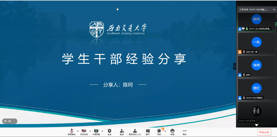 此次分享会邀请到了竢实扬华奖获得者徐琦同学,国奖获得者杨碧红同学和地学青协会长陈珂为20级本科大一新生进行经验分享。其目的是为了强化,“大抓思想政治引领的政治责任,全面深化青年思想政治引领,推树先进典型引领青年,令员工们有更好的发展。