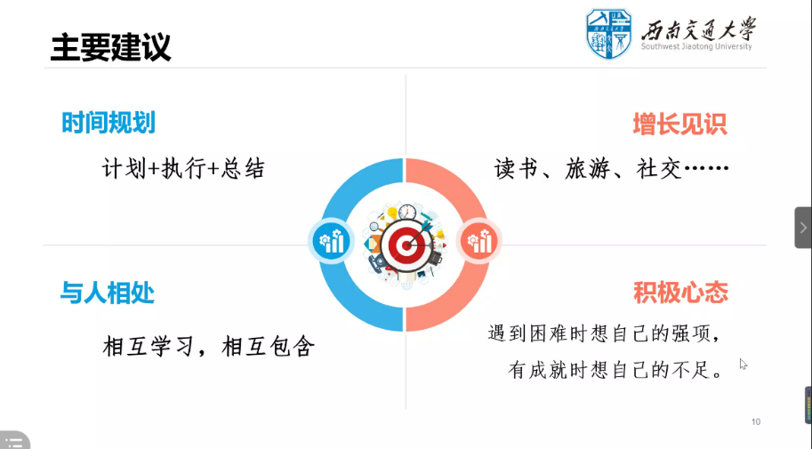首先国奖获得者肖玥玥同学分享了自己的老员工活经历和感悟,从自己大学学习生活以及获奖经验在如何高效规划时间,如何自我学习,如何大学学习英语,如何增加自己的个人眼界和能力等方面给出了自己的建议。