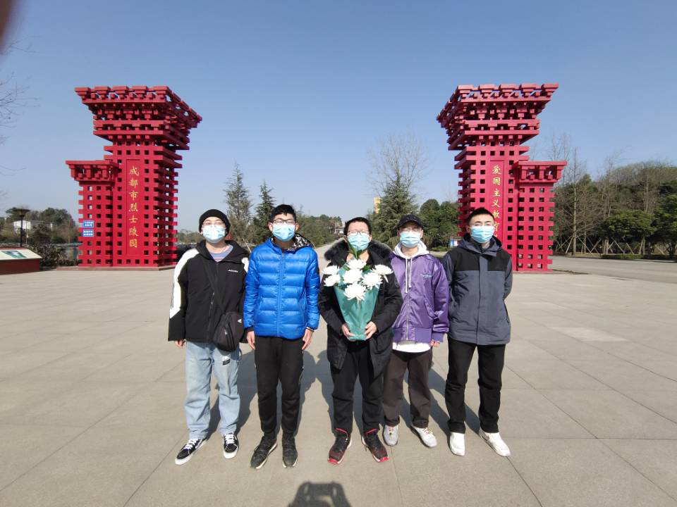 2021年1月12日上午9:00,小组全员5人在天佑斋19栋楼下集合,随后在李承鸿的带领下乘坐地铁6号线,租用摩拜单车前往成都市烈士陵园。
