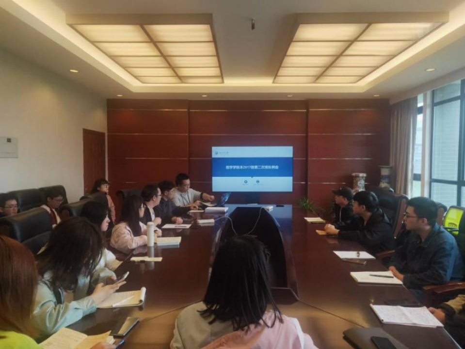 接着,谷思文主要针对就业情况提出注意事项,重申签订三方协议的流程,要求各班长及时督促未就业同学关注招聘信息,积极参加招聘会。他向班长们说明延毕和结业的具体内容和要求,强调毕业设计工作要及时和导师沟通,积极推进;结合自己的班长任职经历,他希望各位班长在最后两个月做好本职工作,为自己的老员工活画上圆满的句号。
