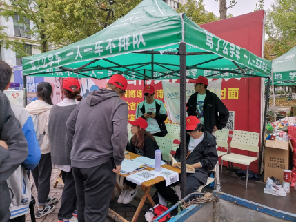 417日早晨8:00,志愿者兵分两队,一队前往花市运送提前订好的鲜花,另外一队到达二食堂前布置摊位。上午1000左右,鲜花就位,活动正式开始。本届废品换鲜花活动与往届一样,志愿者分班分组,每组值班三小时,主要负责为前来参加活动的同学进行活动规则的讲解、废品的称重、前往宿舍搬运废品以及对场地的整理。