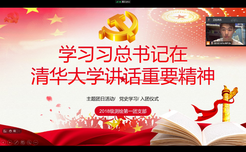 中共中央总书记、国家主席、中央军委主席习近平19日考察清华大学时发表了重要讲话。讲话指出,党和国家事业发展对高等教育的需要,对科学知识和优秀人才的需要,比以往任何时候都更为迫切。为了对讲话的精神进行学习,202156日下午2018级测绘第一团支部召开了一次线上主题团日活动。