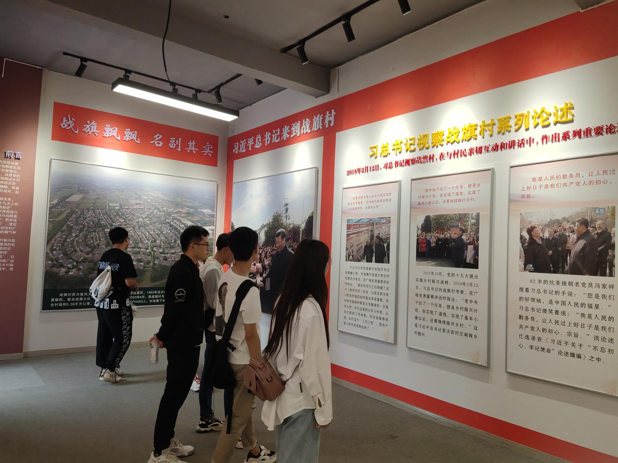 随后,团员们参观了党史馆。馆内陈列了2018年习近平总书记参观战旗村时的情况。2018年2月12日,习近平总书记在战旗村做出了一系列重要论述,赞扬了战旗村党员对乡村振兴做出的突出贡献,并突出强调了乡村振兴在国家战略中的重要地位。