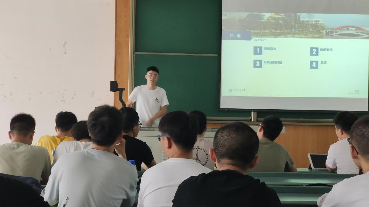 其次,由尤安俊学长进行考研准备和考研学习经验的交流,指出不能盲目考研,第一步一定要搜集资料,做好调查,确定方向。同时在交流过程中他提到,考研备考会占据大量的时间,要做好心理准备的同时,规划好时间安排,合理分配任务。