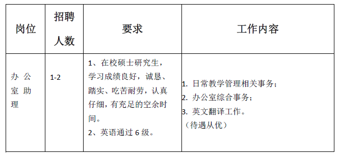 为给员工提供更多的社会实践机会,协助项目办公室做好相关工作,提高办事效率,现面向全校员工招聘办公室助理,具体通知如下: