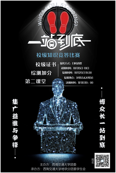 第五届“一站到底”—知识竞赛初赛将持续到10月19日,届时将产生20名选手进入复赛,期待同学们的参加与各位领导、教师们莅临。