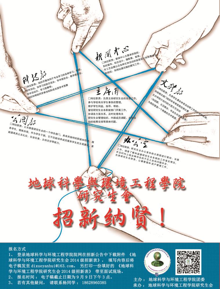 1、登录BEATS院网在公告栏里下载附件《BEATS研究生会2014级招新表》,填写内容后将电子稿发至dixueyanhui@163.com。