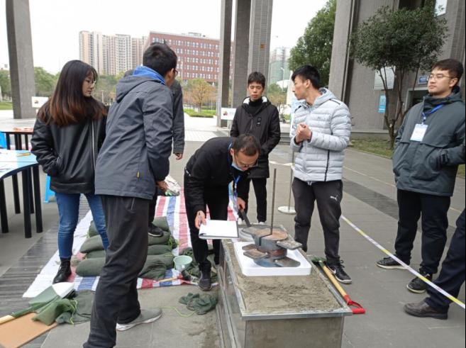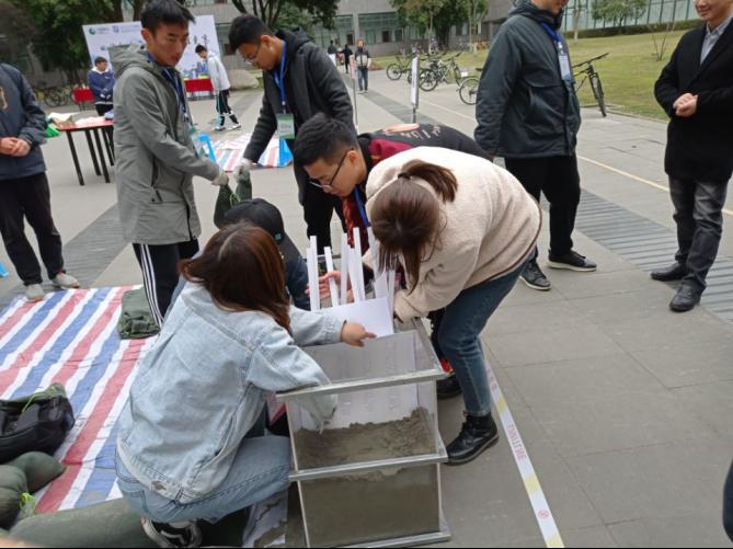 11月22日13时,参赛队伍在四教天井开展决赛A方案决赛,进行支挡结构建造。六支队伍各显神通,集中精力认真比赛,比赛于17时正式结束。比赛由成都四海岩土工程有限公司廖必成、朱维新进行裁判,公司土木工程公司罗强教授、毛坚强教授进行审核。
