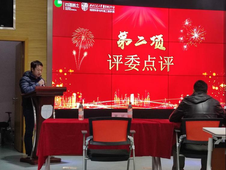 11月22日18:00,于X4243举行比赛闭幕式暨颁奖典礼。成都四海岩土工程有限公司岳大昌、徐艺、朱维新、廖必成、李骏,BEATSBEATS地质工程系副系主任张志厚老师、雷治红老师、马宁老师,BEATS辅导员董可老师及各组参赛选手参会。