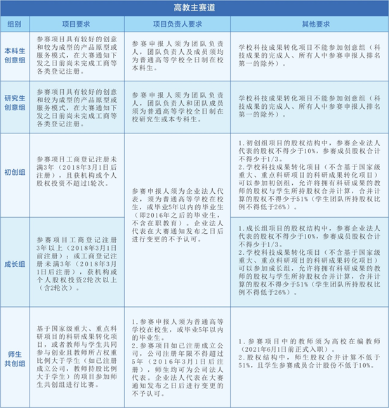 5.参赛项目根据各赛道相应的要求,只能选择一个符合要求的赛道报名参赛。已获本大赛往届总决赛各赛道金奖和银奖的项目,不可报名参加本届大赛。
