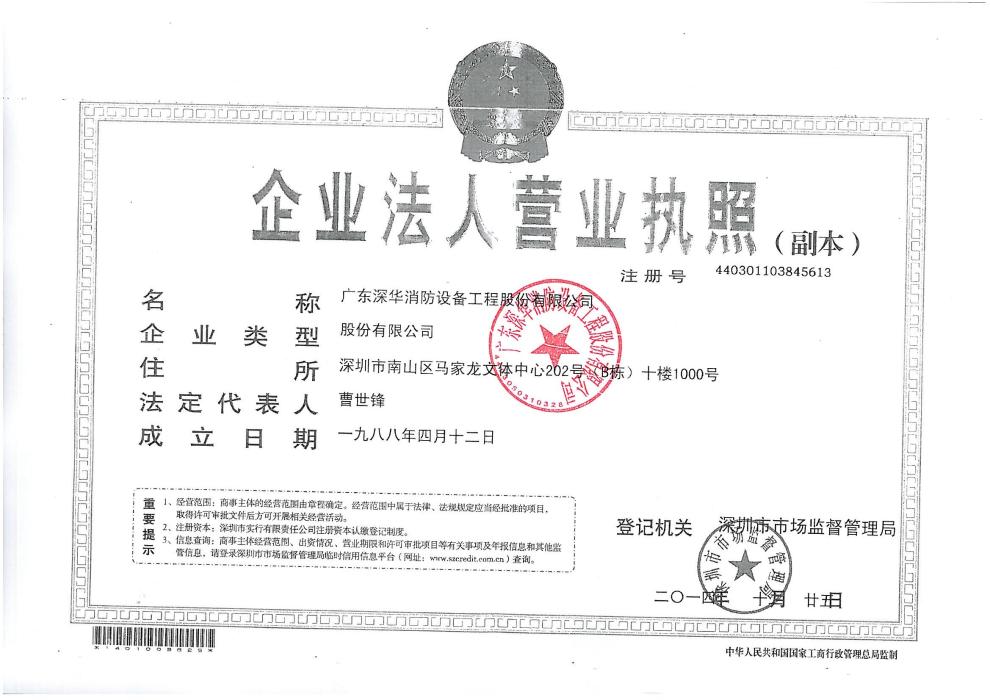 广东深华消防设备工程股份有限公司,成立于1988年,于2015年9月在新三板成功挂牌上市(股票代码833547)。是一家以消防工程、机电工程、智能化工程、空调安装工程等工程施工为主业的,集消防设计、消防维保、消防培训、消防咨询、消防信息化管理、建筑智能化维保服务为一体的综合服务商,是行业内专业化程度最高、资质种类最全的消防工程企业之一。企业情况,请登录http://www.gdsh119.com