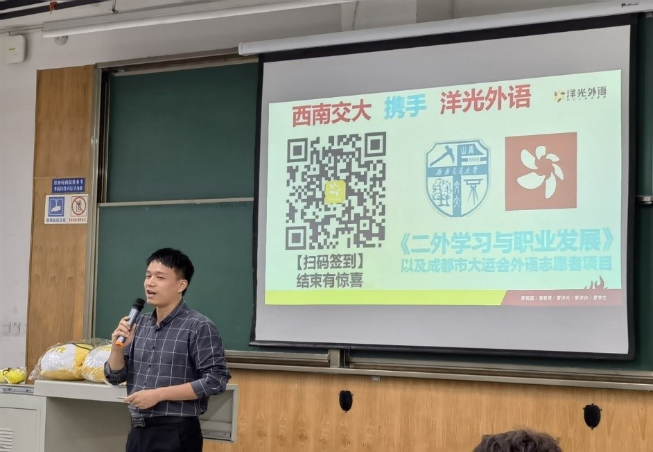 9月24日晚19点30分,BEATS就业指导中心与洋光外语联合举办的小语种语讲座在X4158开展。本次讲座的主讲人为洋光外语全国明星讲师——汪子健老师。汪老师精通日韩法三国语言,有7年法语教学经验,曾在阿尔及利亚从事法语翻译。
