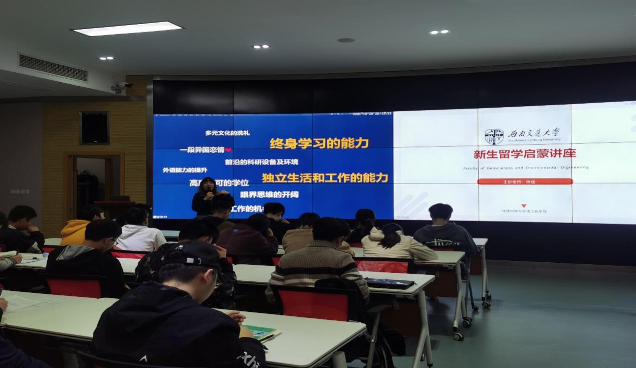 2021年10月28日晚17:30,BEATS“留海说”新生启蒙讲座于犀浦校区四号教学楼X4243教室圆满完成。活动由BEATS就业指导中心主办,此次活动旨在为有留学意愿和需求的本科生提供交流的平台,分享留学的知识和经验。本次讲座诚邀雅思官方课程认证讲师,毕业于英国巴斯大学TESOL专业,获得剑桥大学英语教学能力证书的徐佳老师,讲座主题为“飞跃重洋,人生一次有益的尝试”。