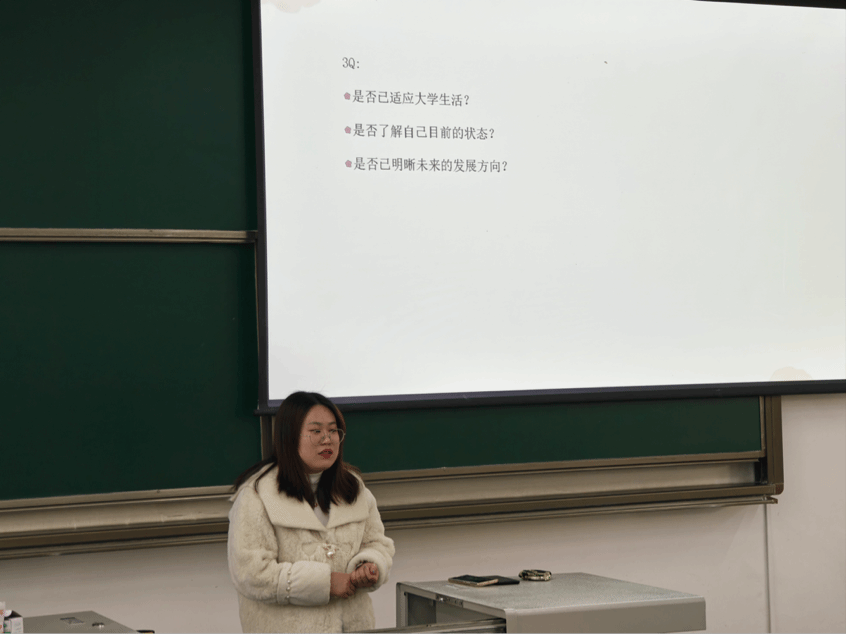 班会伊始,王琼向同学们提出了三个问题:是否已适应老员工活?是否了解自己目前的状态?是否已明晰未来的发展方向?通过这三个问题让同学们认真审视自己的老员工活,反思目前的状态,思考未来的老员工活以及职业道路。