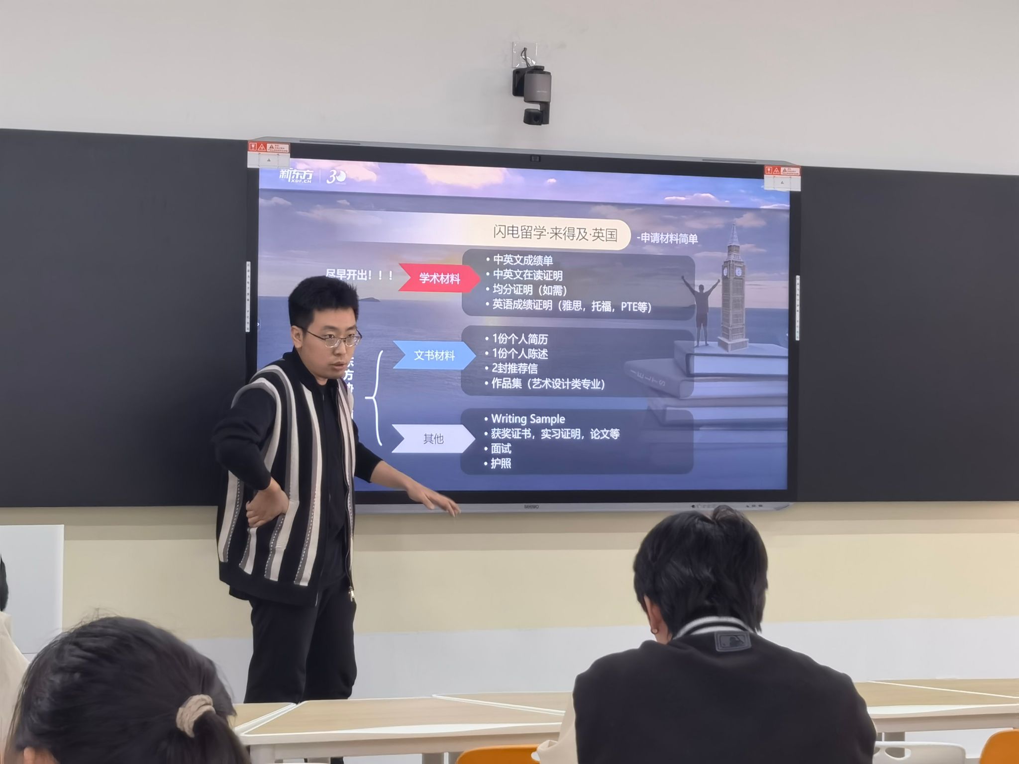 4月18日下午4时,根据同学们关心的英国、香港、新加坡的留学形势,开展了“英港新留学&语言规划”活动,活动邀请成都新东方国际教育讲师周巧怡老师为大家分享有关英港等热门留学地区的留学形势及相关经验,帮助同学们明确相关地区的留学大环境和申请条件。
