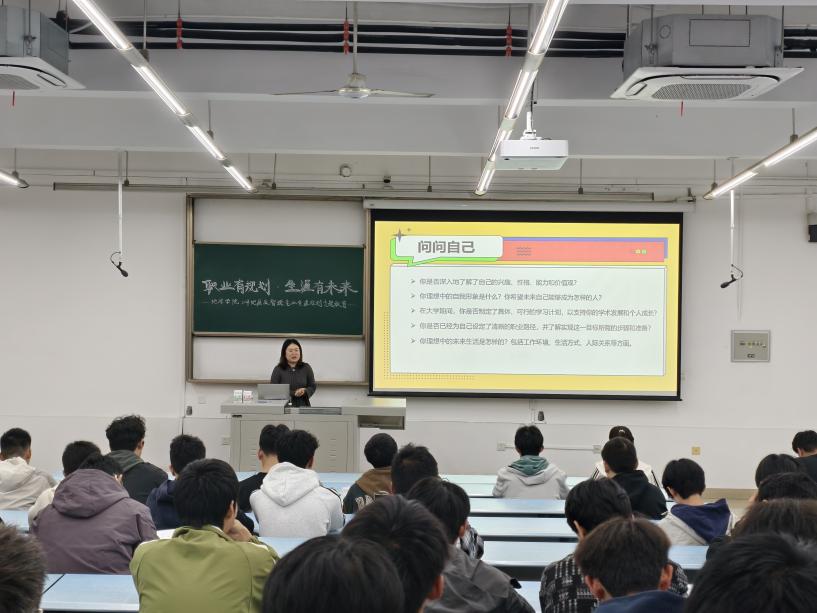王琼老师从 “对自己的认知”“对自我的探索”“对未来的展望”几个方面为大家开展了一堂充满启迪与深思的职业规划教育。首先王老师从几个问题引入,带领我们从兴趣、性格、能力评估以及价值观四个方面去思考对自己的认识程度,并向我们推荐了一系列测评工具,如线上测评-BEATS智慧就业网-生涯测评、霍兰德职业兴趣、MBTI性格类型分析,以便我们更加深入地了解自己。紧接着,强调了在大学期间了解职业生涯、学习生涯规划的重要性,希望同学们能够做好大学的规划,除了深耕专业知识和技能,更要拓展技能、培养爱好,不断地探索成长。最后对于未来,王老师建议我们去了解地质及智探专业往年的就业去向,读研去向或者其他的工作方向,鼓励我们从竞赛、工作经验、荣誉奖励、技能证书等方面去充实自己,去丰富自己的简历。