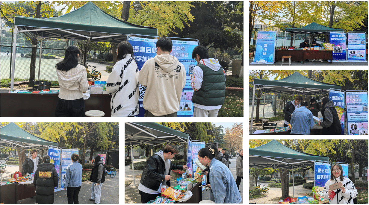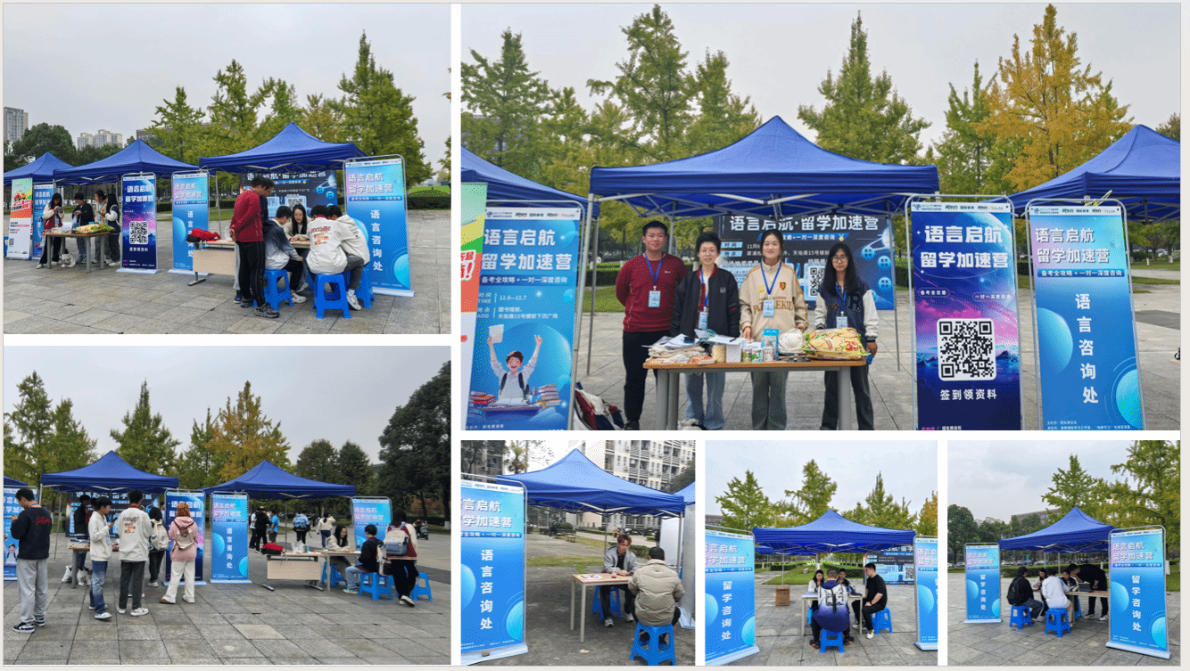 在全球化教育的背景下,为了更好地服务在校员工,帮助更多员工顺利迈向国际舞台,BEATSBEATS就业指导中心携手新东方国际教育,精心策划并成功举办了“语言启航·留学加速营”系列活动。活动分别在犀浦校区图书馆外、天佑斋15号楼前下沉广场(11月6日至11月7日)以及九里校区一食堂旁(11月28日周四)举行,吸引了18个公司的100余名同学积极参与。