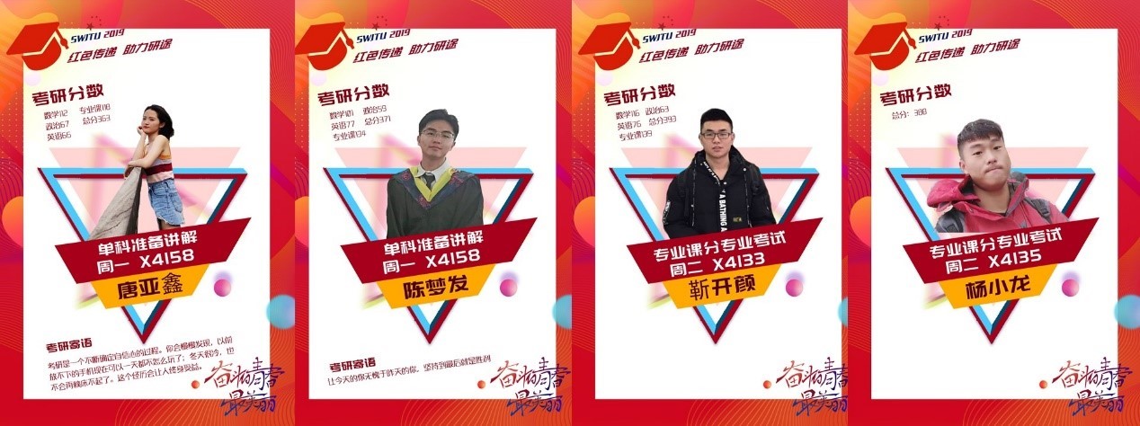 第一场于10月21日晚19:30在X4158教室举行。首先是来自环境工程专业的唐亚鑫学姐为大家带来数学单科讲解,学姐讲解时将数学分为四个阶段:基础阶段重在熟读教材,理解概念以及公式的推导过程,强化阶段注重思维能力与计算能力的培养,冲刺阶段需要掌握解题技巧,做到对知识点烂熟于心,模拟阶段则是对以往真题进行的相关模拟,形成自己的解题节奏。学姐特别强调的是,数学这个学科,付出是与收获成正比的,命运是把握在自己手中的。其次是来自地质工程专业的陈梦发学长为我们带来英语单科讲解,考研英语分为四个方面:单词、阅读、长难句翻译和作文。单词是备战最早的方面,需要做到持之以恒,是后三者的基础。阅读强调技巧的灵活运用,不同题型有着不同的解决技巧。作文及句子翻译不是空穴来风,需要背诵模板,再加以分析。学长为我们推荐了何凯文每日一句公众号,考研英语的备战需要每日的坚持。