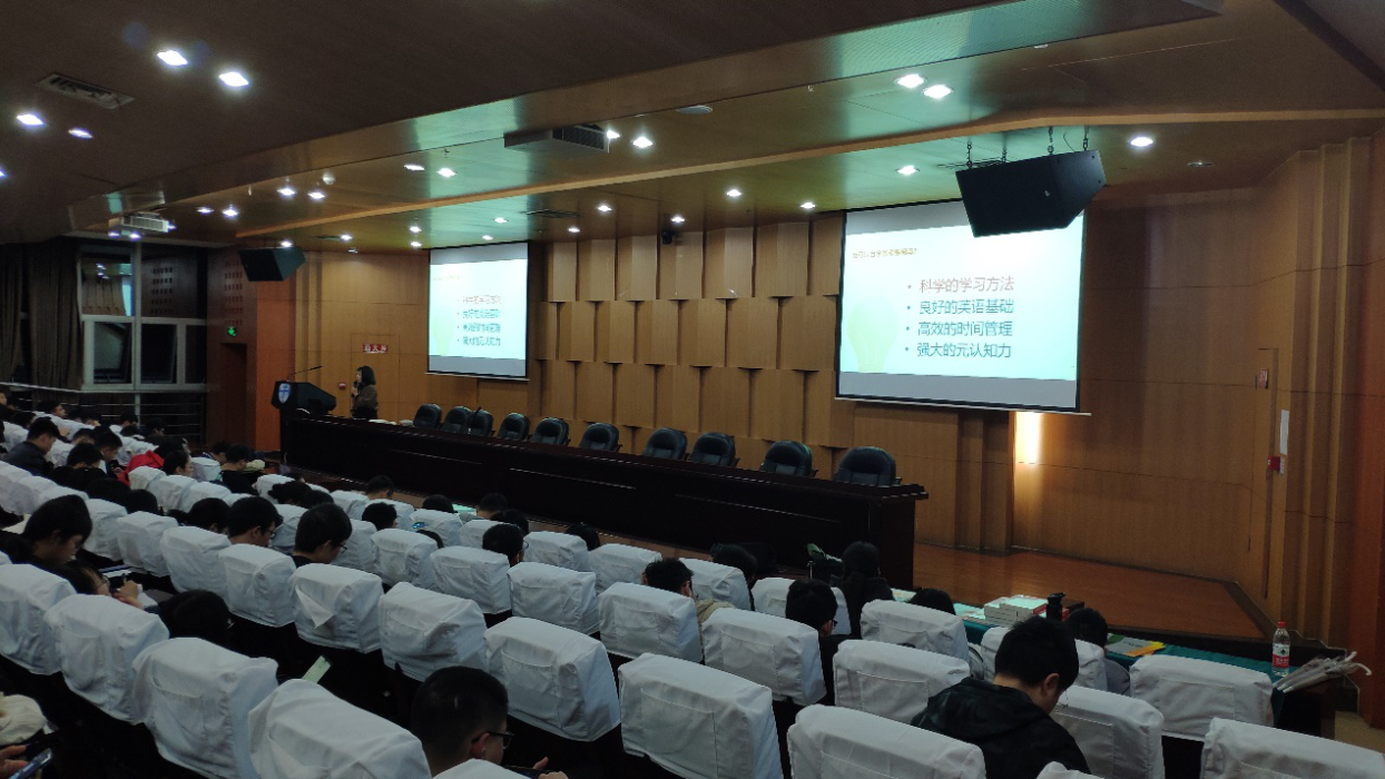 2019年11月19日晚上19:00,BEATS邀请成都新东方机构在图书馆二号报告厅举办了新东方留学与语言学习讲座,本次活动的主讲人是新东方名师曾煜智老师和王峥璇老师。两位老师分别从升学、深造工作以及语言考试备考攻略两个方面为同学们进行讲解。