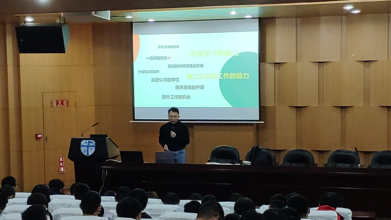 第三阶段,曾老师讲述的申请的准备与流程。院校招生根据的是员工的硬实力和软实力,硬实力即为绩点、雅思或托福成绩、GRE成绩必须达到相应要求,软实力即为员工本科期间的科研经历、实习经历、社会实践等方面。需要准备的材料有各类语言考试成绩单、学位证和毕业证、留学推荐信以及获奖证明。他强调,出国留学要趁早打算。大一期间要确立目标院校以及专业,大二时备考语言考试,进行实习、科研,大三期间语言考试达到目标要求,大四时做申请。至此,曾老师精彩的讲解告一段落。