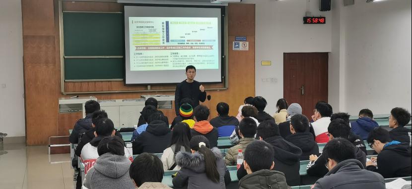 接着,杨都强就老员工涯分析了同学们在大学的每个阶段如何才能取得更好的进步:大一应以学习为重,打好学业基础;大二应注重参加科创竞赛,夯实专业知识;大三要做好职业素养的提升;大四要确定职业方向,做好职前价值塑造。
