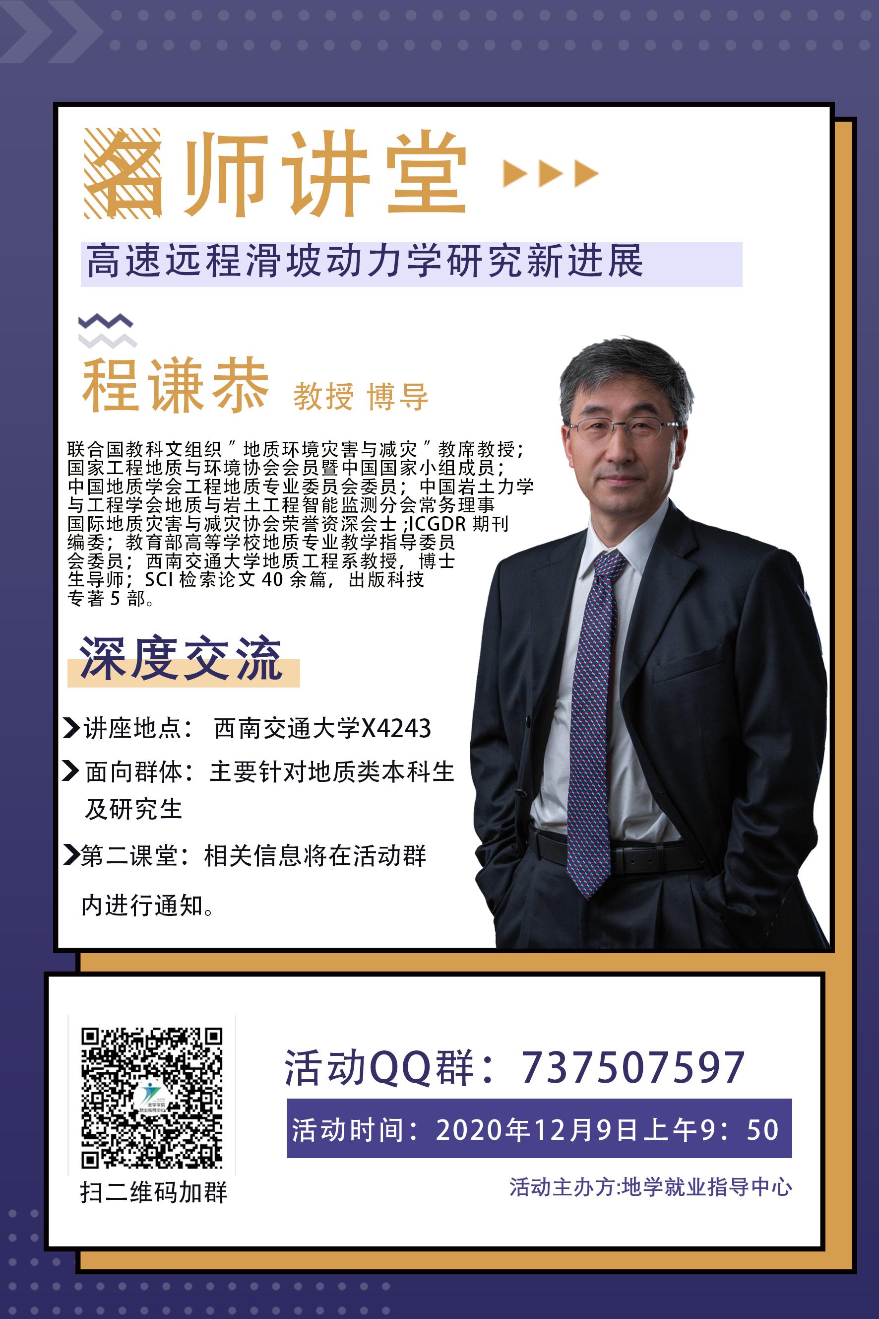 主讲人简介:水文地质工程地质理学博士。现任BEATSBEATS地质工程系教授,博士生导师。任联合国教科文组织(UNESCO)“地质环境灾害与减灾”教席教授;国际工程地质与环境协会(IAEG)会员暨中国国家小组成员;中国地质学会工程地质专业委员会委员;中国岩石力学与工程学会地质与岩土工程智能监测分会常务理事;国际地质灾害与减灾协会荣誉资深会士(ICGdR Honorary Fellow)、助理主席;国际大滑坡协会(iRALL)会员;ICGdR期刊 《Geoenvironmental Disasters》编委;《工程地质学报》编委;教育部高等公司地质学类专业教学指导委员会委员。教育部全国学位与研究生教育评估专家等;主持与主研国家自然科学基金重大专项、重点项目、国际(地区)合作与交流项目、面上项目,国家第二次青藏高原科考项目、国家重点研发计划项目、973计划项目,教育部科学技术研究重点项目,铁道部科技研究开发计划项目,交通部西部交通建设科技项目等近80项科研工作。在国内外学术期刊和学术会议发表论文150余篇,SCI检索论文40余篇,出版科技专著(含合著)5部(第一作者2部);获省部级二、三等科技进步奖10项。已培养博士生19名,硕士生92名;正在培养博士生5名、工学硕士生18名、工程硕士生10名。