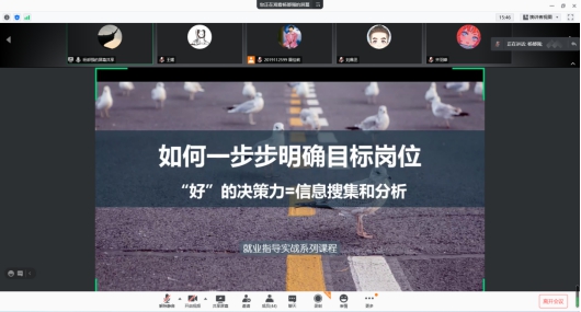 2020年12月22日21:30,BEATS就业指导中心“女生职业成长训练营”系列活动第三期——“职业规划——如何一步步明确目标岗位”讲座在腾讯会议顺利举行。为积极响应公司防疫政策与要求,本次活动以线上会议的形式开展。活动由就业指导中心郑文娇老师主持,特邀杨都强老师主讲。