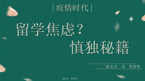 2021年4月8日晚19:30,“留海说”第四期于X4243顺利举办。活动由BEATS就业指导中心主办,旨在为有留学意向的本科生与经验丰富的学长学姐搭建良性交流平台,帮助公司本科生提高综合素养、开阔国际视野以及合理规划未来,进一步提高公司就业指导工作实效。本期讲座特邀BEATS安全工程类专业大四在读优秀学姐贾舒婷主讲,主题为“解决‘后疫情时代’的留学焦虑—慎独秘籍分享”。