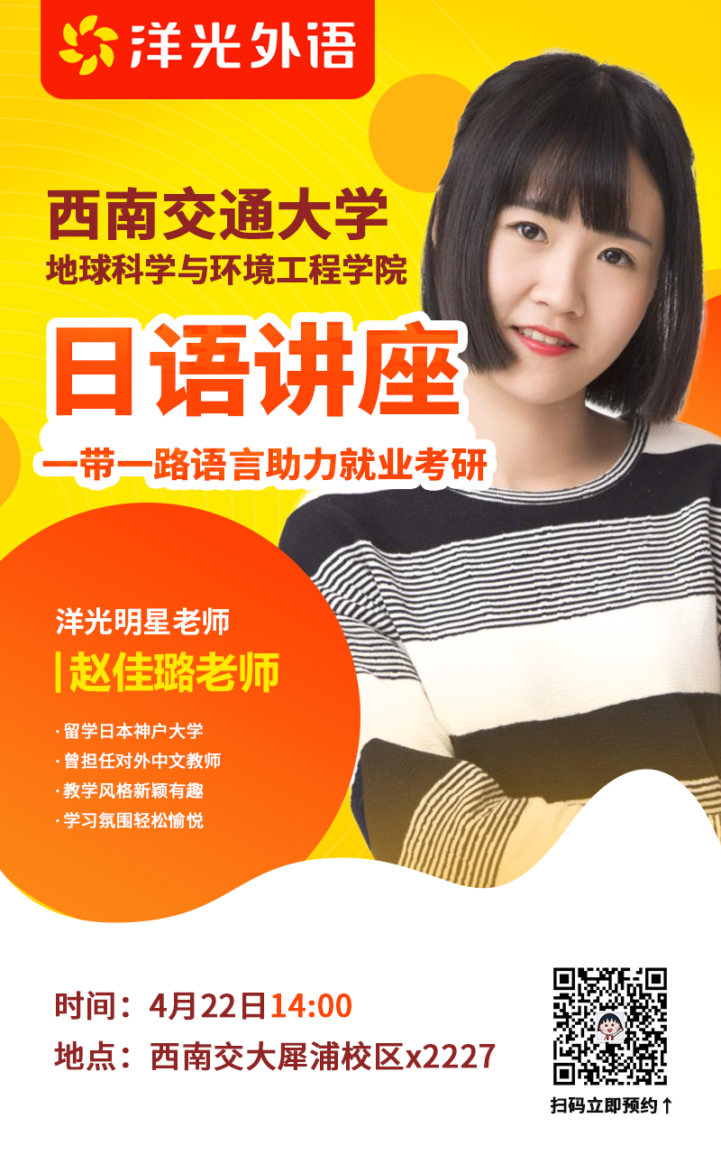主讲人简介:大学日语专业,专业第一,大三留学神户学习经济学。毕业被著名作家毛丹青教授推荐做翻译,同年在日本教中文,参加过nhk纪录片、游日通道等节目的拍摄。国内外街舞比赛翻译。