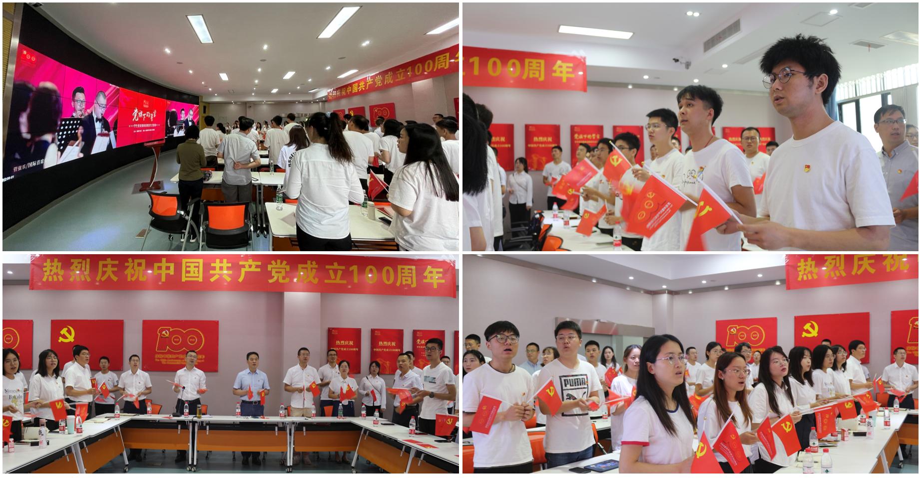 活动最后,全体党员挥动着小党旗和庆祝中国共产党成立100周年的小旗帜,共同合唱《没有共产党就没有新中国》。激昂的旋律、熟悉的歌词,党员们在歌声中回顾中国共产党百年辉煌历程,在党的伟大奋斗历程中汲取前进力量,用歌声表达坚定不移听党话,跟党走的决心。整个“党旗下的誓言”——员工党员集体过“政治生日”活动在嘹亮的歌声中圆满落下帷幕。