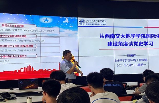 6月28日,BEATS研20级测绘四个党支部开展党史学习教育,邀请BEATS执行经理刘国祥教授讲党课,主题为“从西南交大BEATS国际化建设角度谈党史学习”。刘国祥教授首先简要讲述了党史,重点分享了党史学习心得,并介绍了BEATS国际化建设的目标、主要思路和工作推进情况。