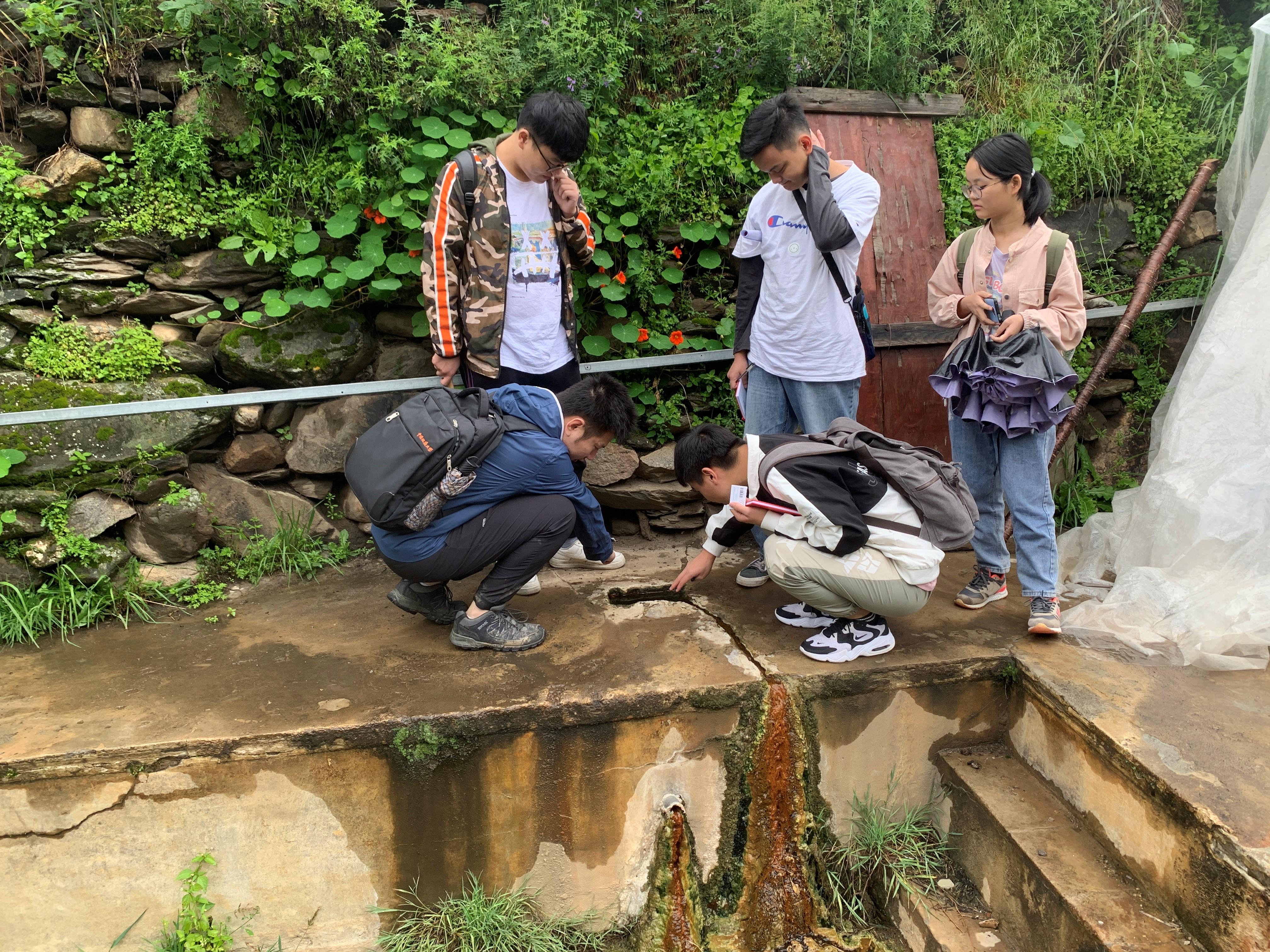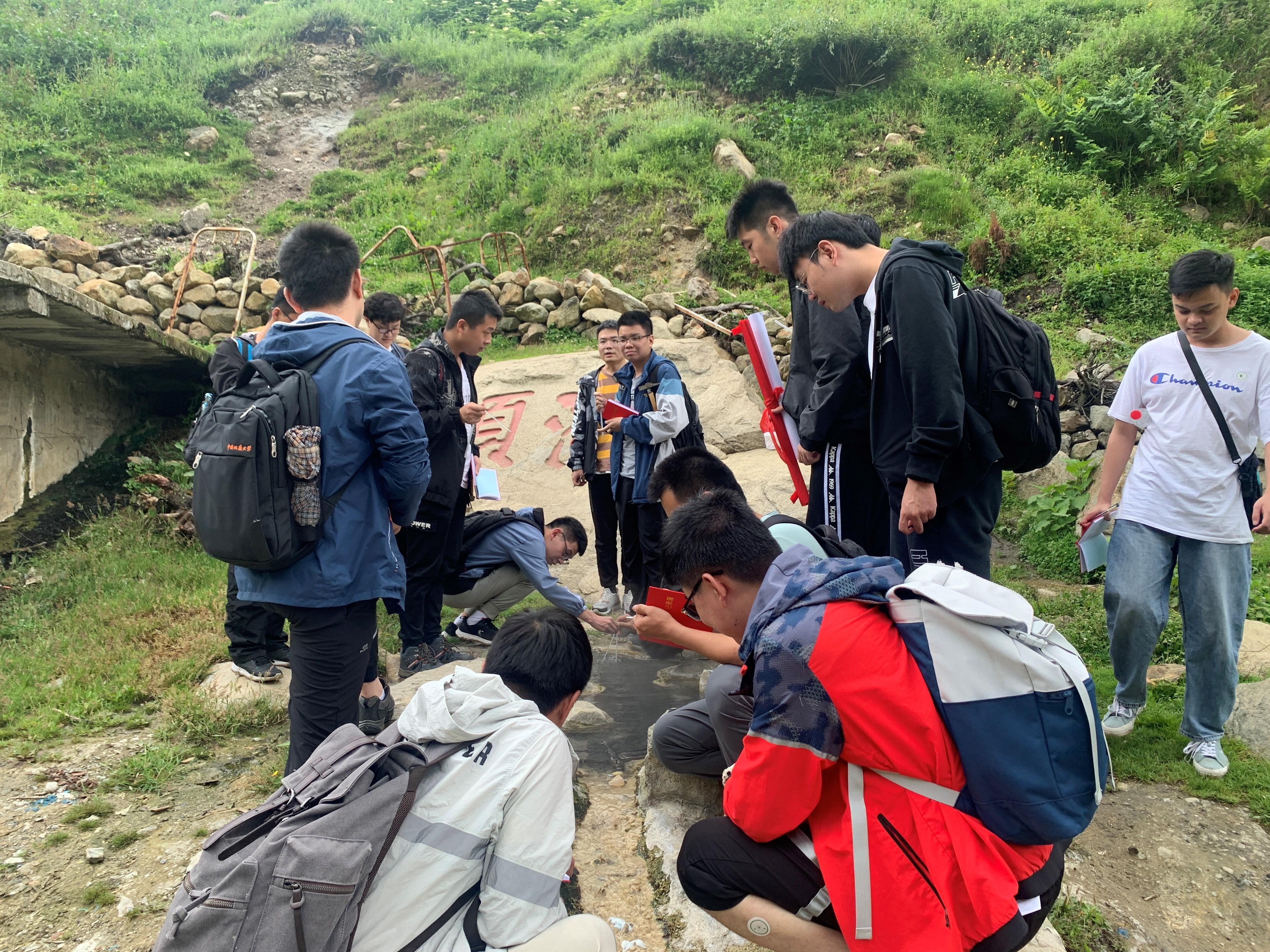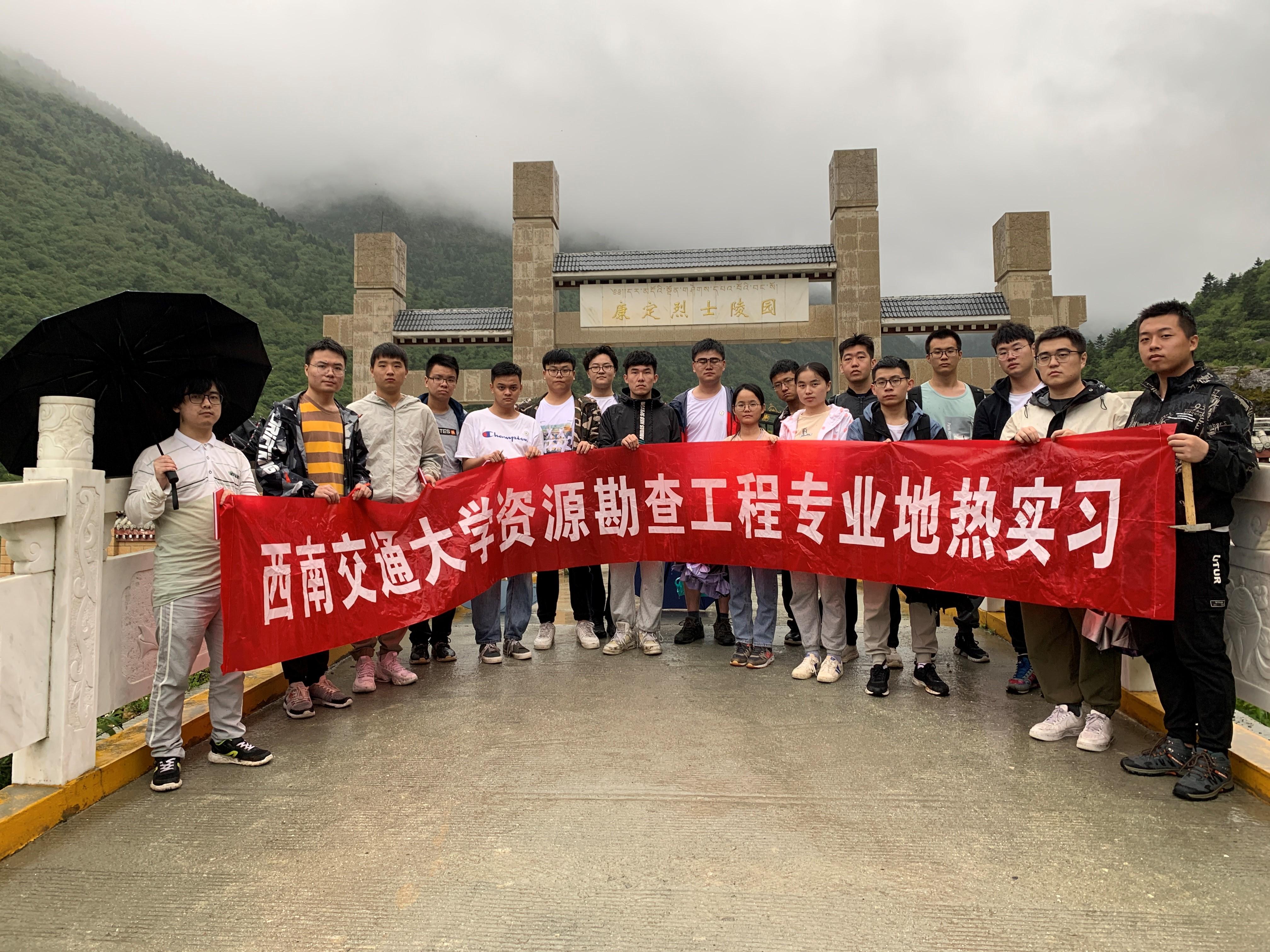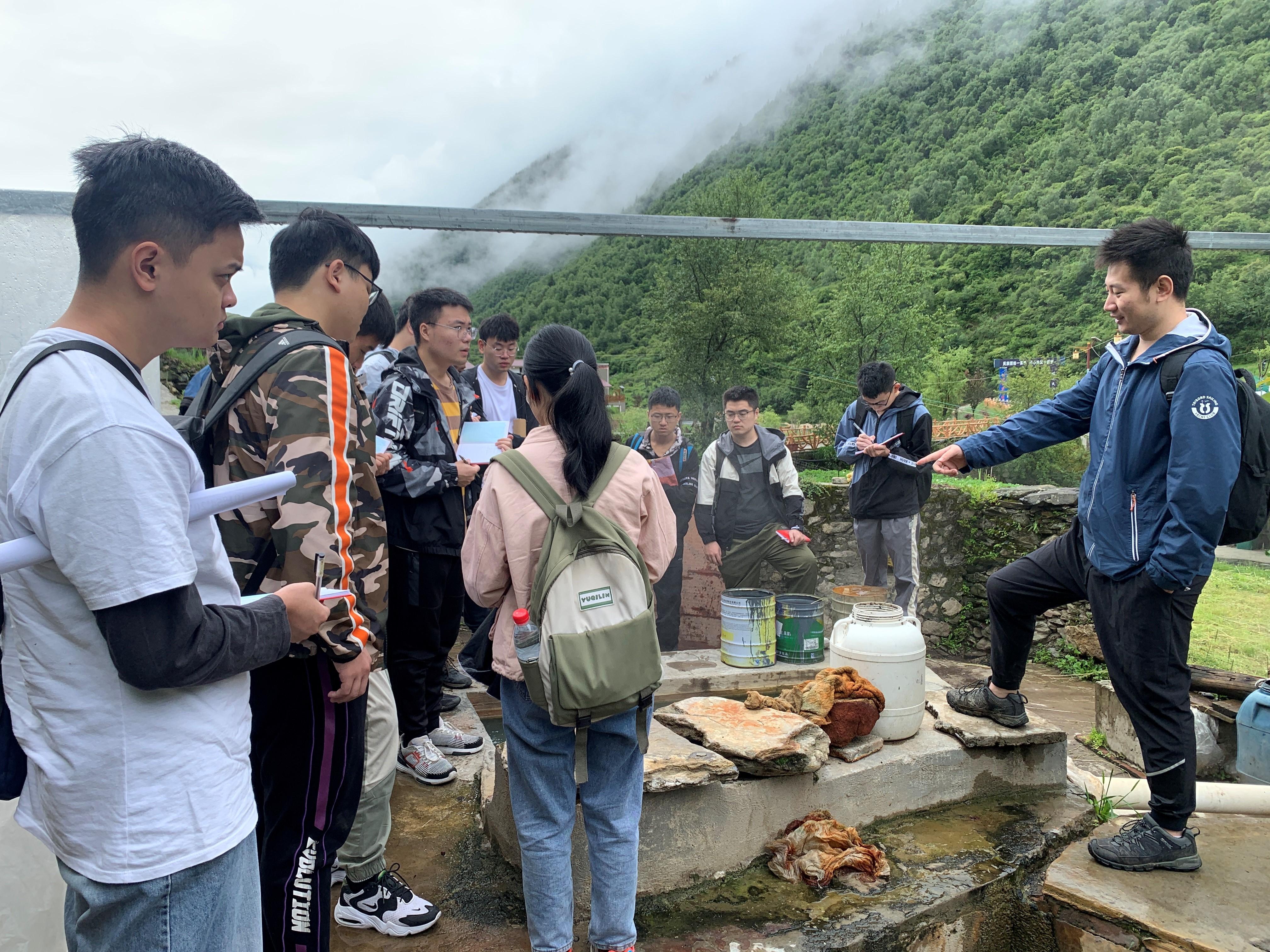 最后,张云辉和石宇老师带领资源勘查工程专业18名员工在康定进行了外业实习。针对康定榆林宫、二道桥、中谷等地的温泉和冷泉的地质成因、地质构造等内容开展了调研,并参观了榆林宫地热供暖项目的室内配套设施与工艺流程。实习过程中,途经康定市烈士陵园,带队老师不忘进行课程思政,为员工宣讲了红军长征的艰难险阻,鼓励大家要弘扬革命烈士吃苦耐劳的精神,学好专业知识,为我国矿产资源行业发展贡献力量。至此,资源勘查工程专业在康定的第一次外业实习顺利完成。
