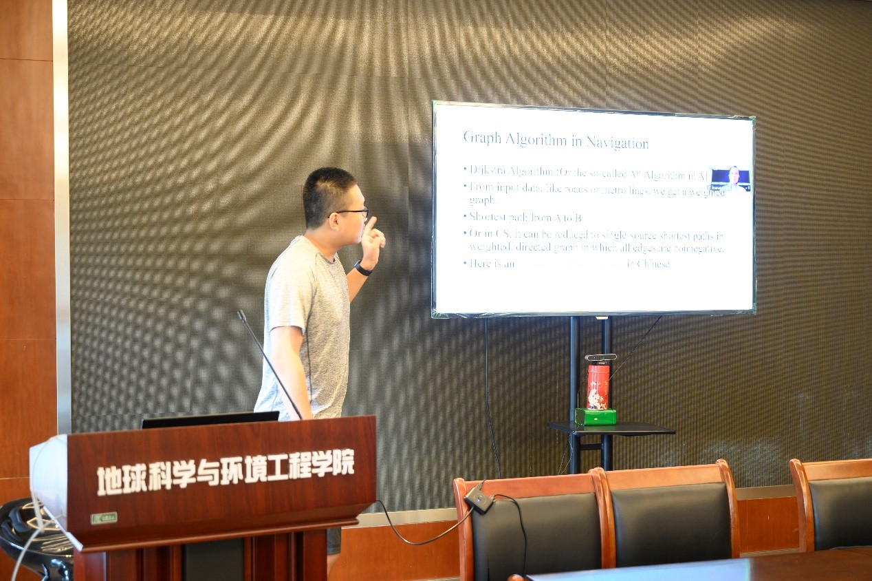 7月12日上午,BEATS2021年首届暑期国际课程周在X4520会议室顺利开课。BEATS外籍经理Lutz Plümer教授作题为“What Geodesy and Geoinformation are all about – Route Planning – the basic Algorithm in your Navigation System”的讲授,现场通过交通出行如何进行路径规划的问题,与同学们进行讨论交流,气氛热烈。借由这项讨论,Plümer教授引出非常具有代表性的寻求最短路径的算法——Dijkstra算法,与同学们交流学习。