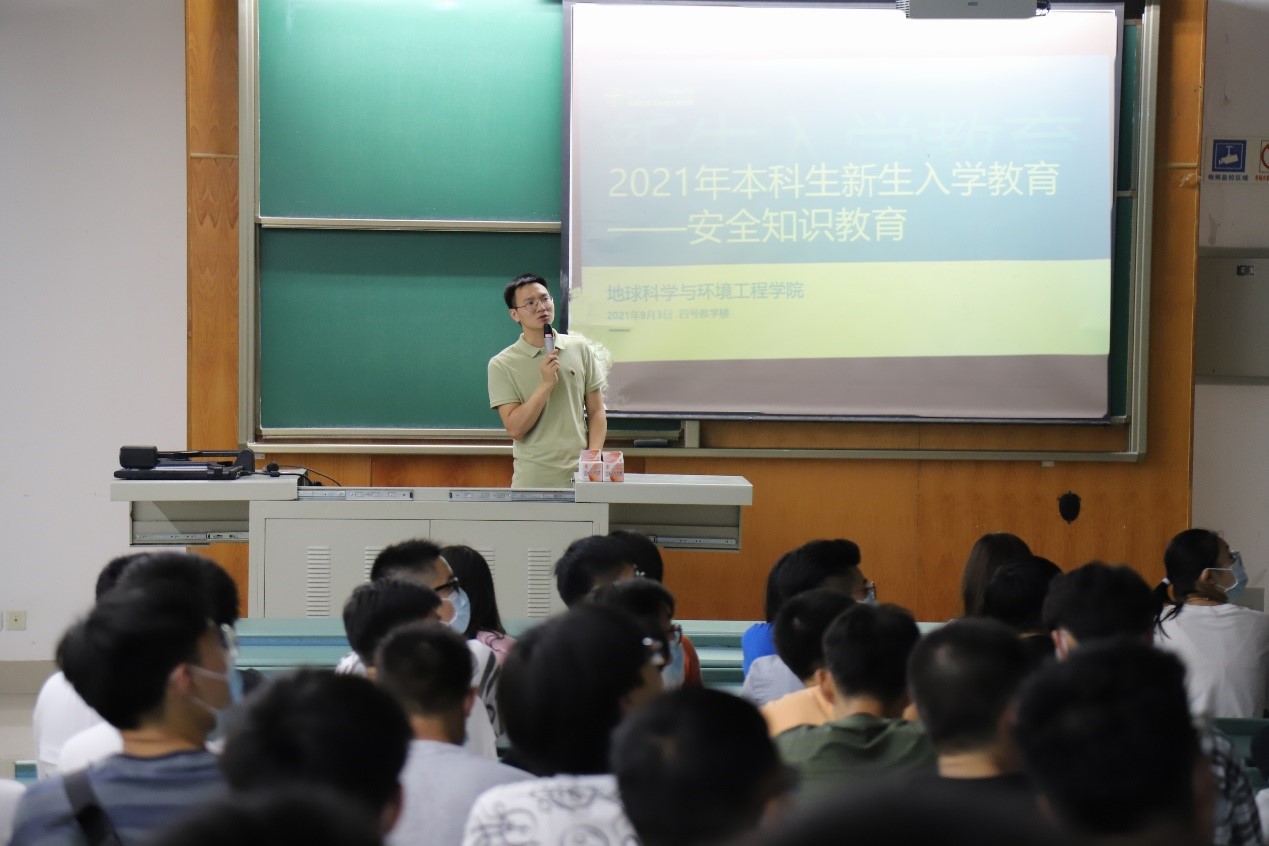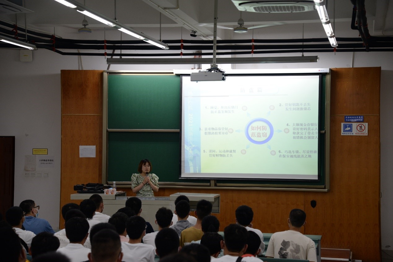 傅尤刚在安全知识教育开始前与2021级新生进行了亲切地交流,嘱咐同学们疫情期间做好个人防护。随后进入主题,他表示,在入学之初开展安全教育,是社会发展、社会法制建设和经济发展的需要,也是大学环境的客观要求。他结合数据和案例重点讲解了防盗、防骗、防人身伤害、交通安全、防火以及防震六个方面的安全知识,叮嘱同学们要提高安全意识,掌握一定的安全知识,尤其是要警惕网络上出现的各种新型骗局,保护好自己的人身财产安全,同时也要遵纪守法,严以修身,共同创建和谐校园。