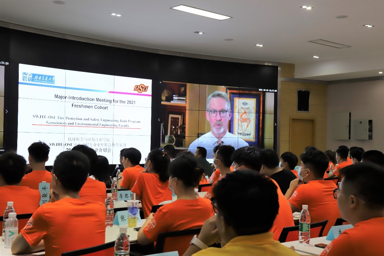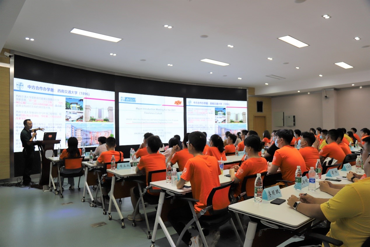 SWJTU-OSU安全工程专业中外联合办学项目部在X4243举行2021级新生见面会暨专业教育。公司党委副书记兼副经理许军华、项目部相关负责老师及安全工程专业全体新生一同参加。