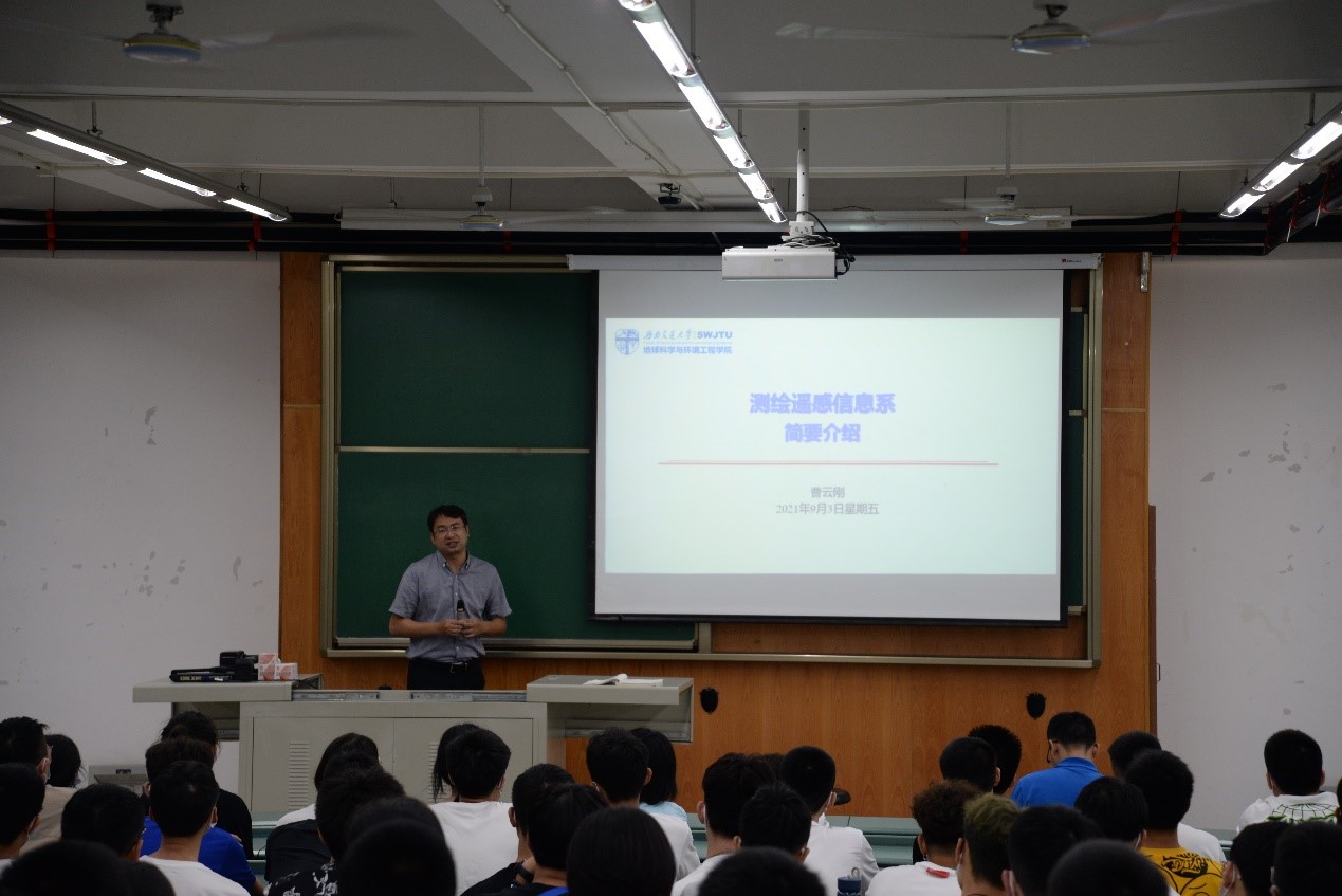 齐华首先从西南交大的建立引入,向同学们介绍了设立测绘专业的由来,以及毕业同学的就业去向;在理清了交大测绘系的历史线索后,向大家讲授了员工前辈的先进故事。曹云刚和张同刚依次向同学们介绍了测绘系的学科背景、培养目标、团队队伍、培养计划等主要情况。最后,老师们寄语同学们 “面临全方位的发展要求,要成为国家建设的有用人才。”