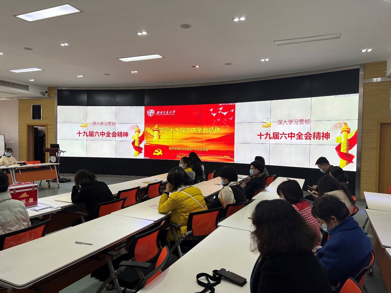 11月18日下午,BEATS教工行政党支部及学工组全体同志召开干部大会,传达学习贯彻党的十九届六中全会精神,并对贯彻落实工作进行安排部署。