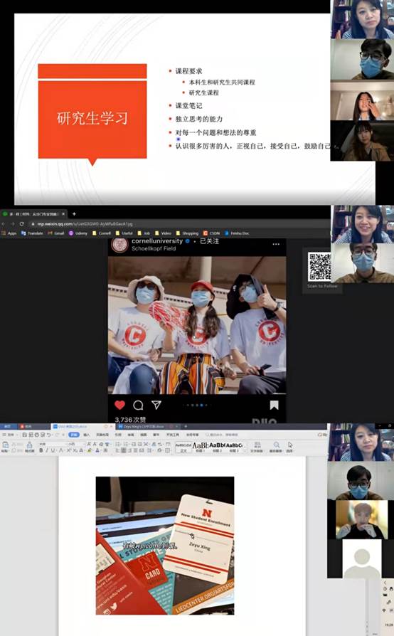 5名同学随后分别从防疫、住宿、交通、饮食、医疗、校园软硬件条件、职工服务、本科/研究生学习和课余生活等方面进行了详细的介绍。