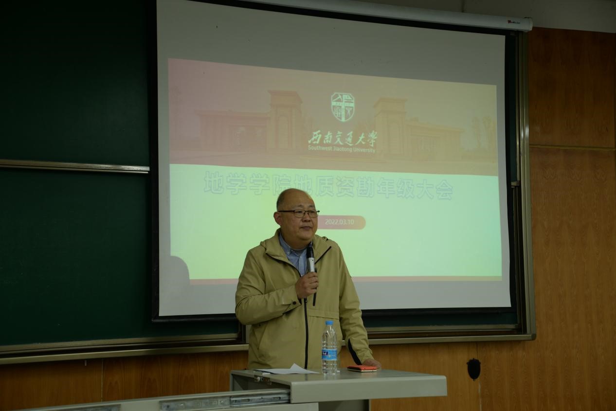 傅尤刚强调地质专业的重要性,表示地质专业社会需求量大,就业率可观,就业待遇良好,希望同学们珍惜学习机会,用实际行动缓解就业焦虑与不安。