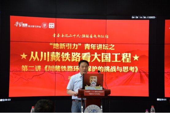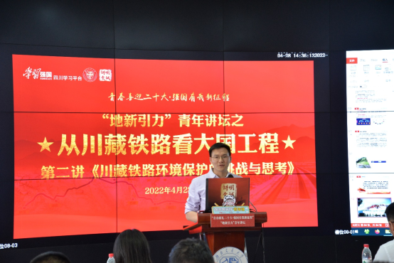 4月28日下午,由川藏铁路刘彬生态环保创新工作室牵头人、中铁二院集团公司劳模刘彬主讲讲座“川藏铁路环境保护的挑战与思考”在X4243举行。公司党委书记关秦川、环境科学与工程系系主任赵锐参会,线上线下共计500余人听讲。BEATS团委书记杨都强主持讲座。