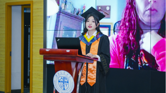 毕业生代表董雯雯回忆了自己老员工活的难忘点滴,她表示,在公司难忘的经历成就了更好的自己,并真挚表达了对于同学、家人、各位辛勤付出的老师们以及该项目所有工作人员的感谢,勉励同学们这次毕业并不是结束,而是一段新的开始,希望同学们迈步前进,拥抱属于自己的新天地。