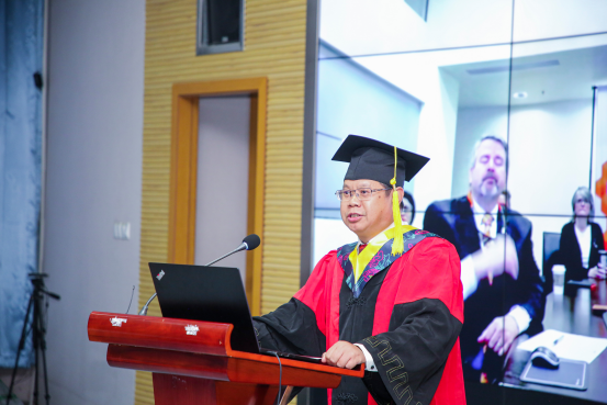 俄克拉荷马州立大学副教务长Randy Kluver致辞,对2022届毕业生表示祝贺,同时希望项目毕业同学今后能保持初心,善良自信,直面人生的挑战,拥有美好人生。随后,在场师生一同观看了俄克拉荷马州立大学消防与安全工程系教授们送上的视频致辞。