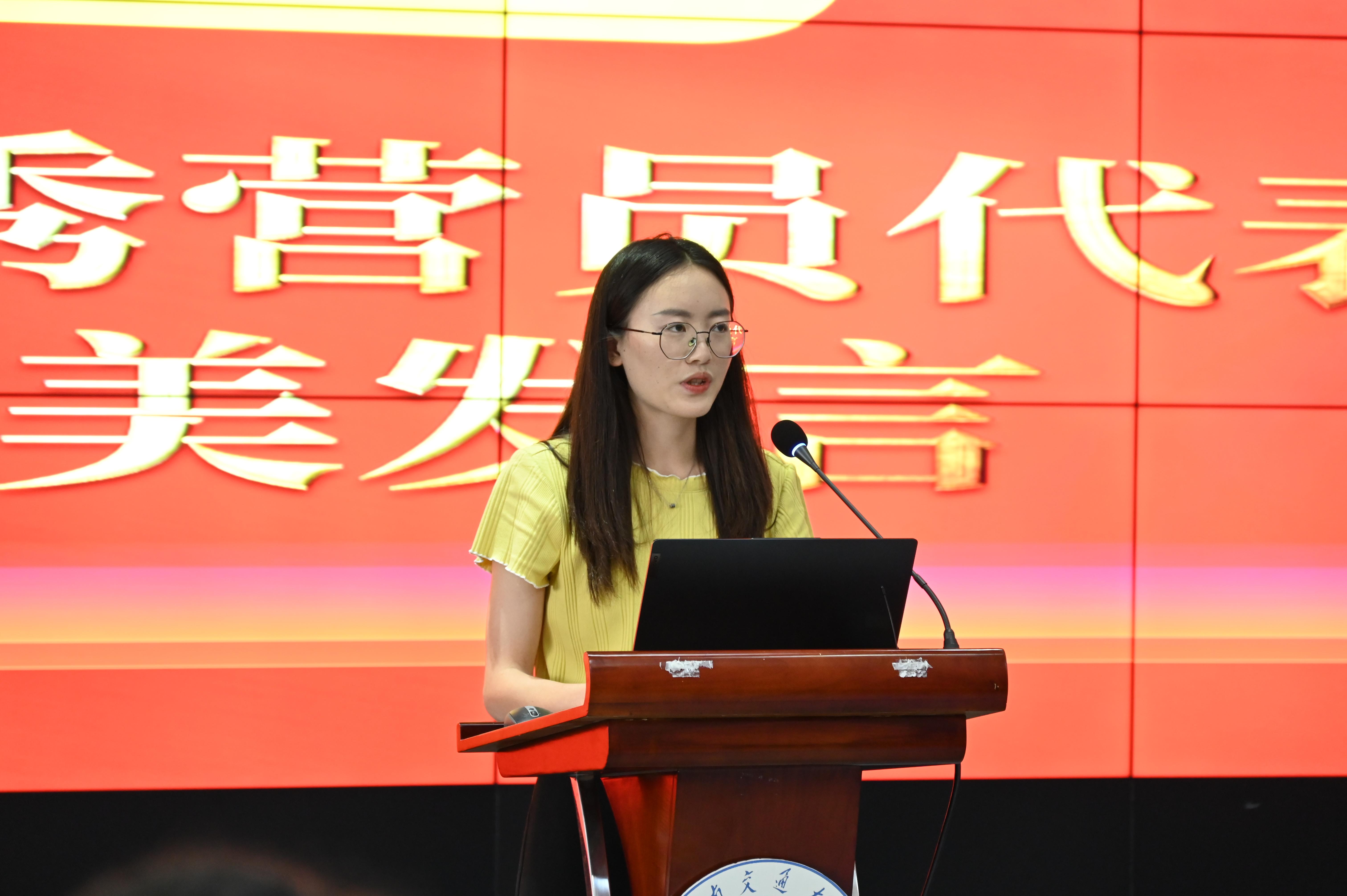 开营仪式上,上届训练营优秀营员代表、人文公司羌族同学罗乔美向大家分享了自己的感悟。罗乔美回忆了自己从初入大学时的迷茫,到现在成为人文公司免研辅导员的心路历程,分享了自己的家乡阿坝州在党和国家的关怀下,医疗、交通和经济发展日新月异的变化。她表示,第一届训练营让自己收获颇丰,不仅提升了思想认识和综合素质能力,也感受到民族团结之情,中华优秀传统文化之美。